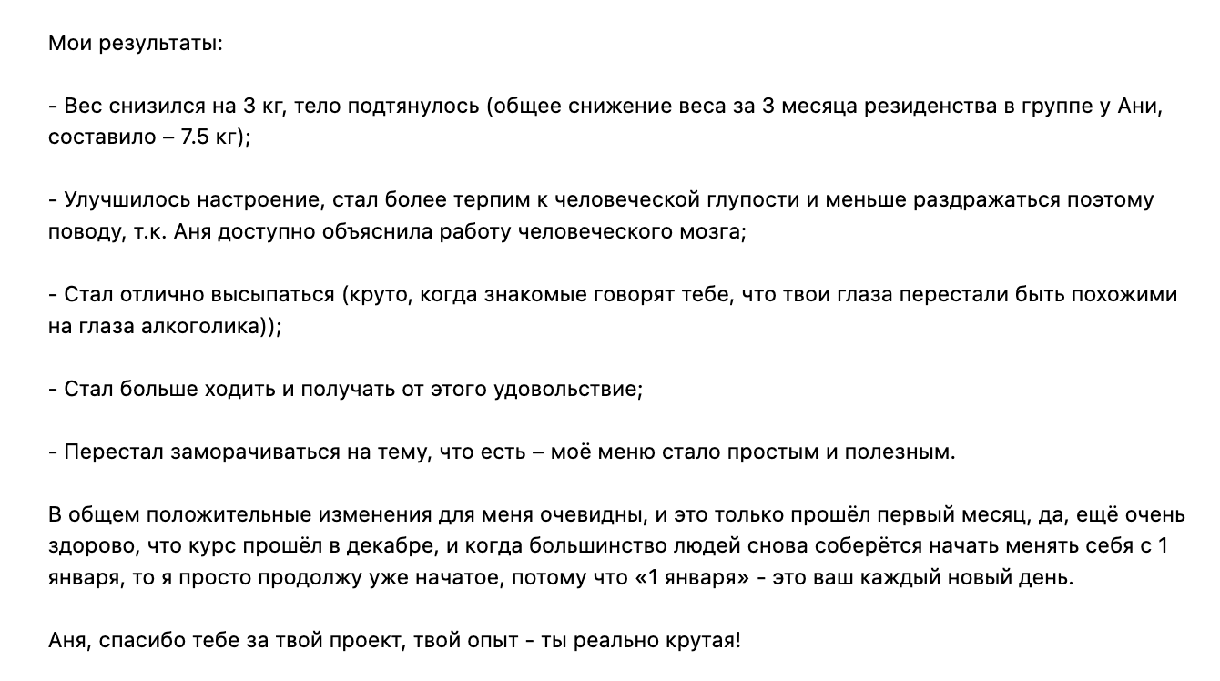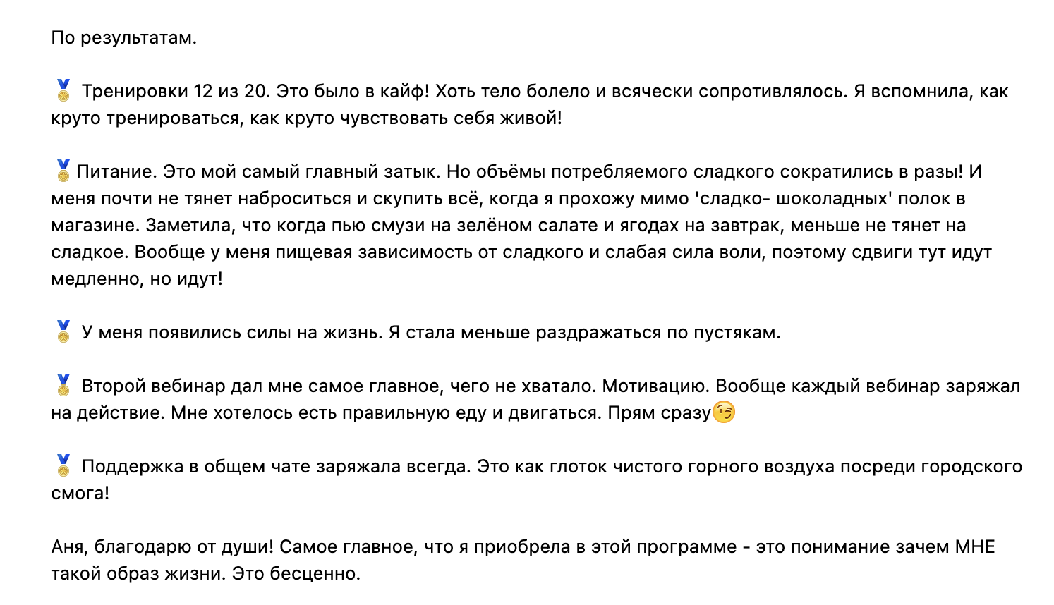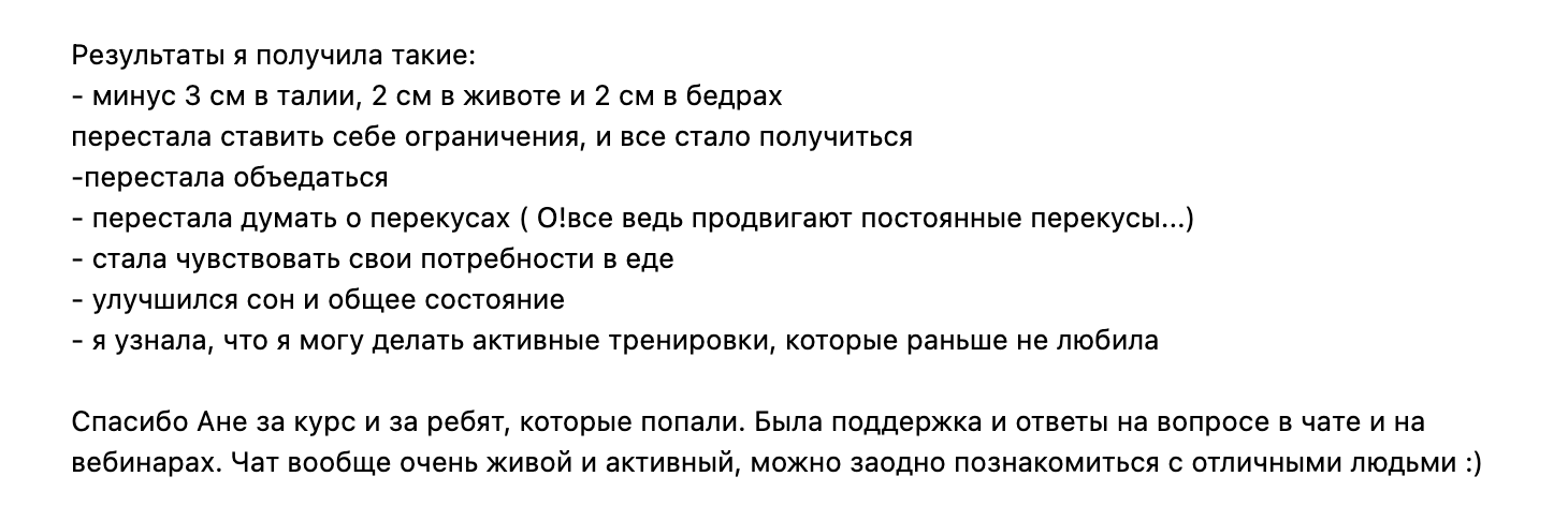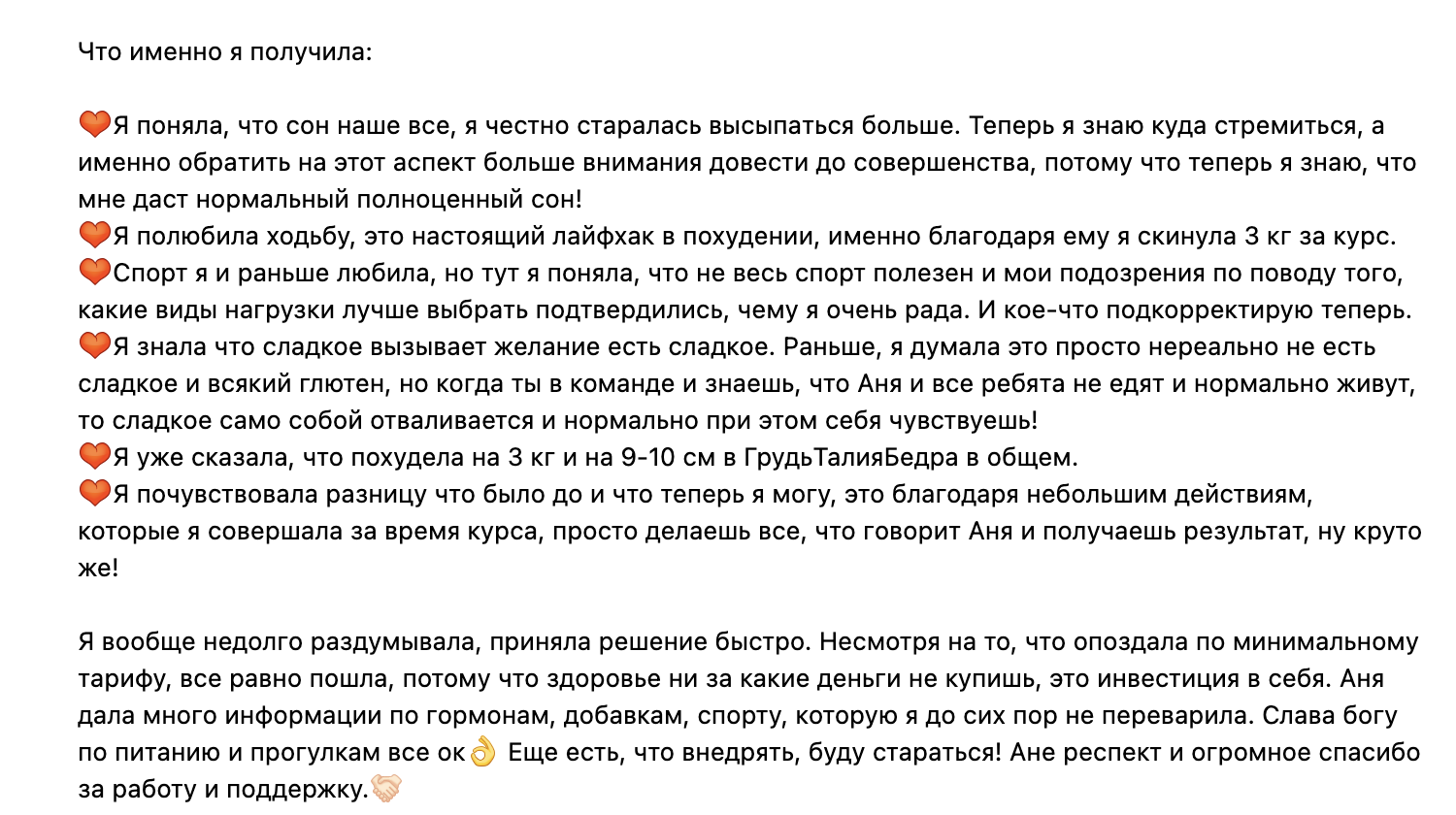 100+ положительных отзывов от участников, которые прошли мои курсы и программы. Часть из них ты сможешь посмотреть ниже 👇