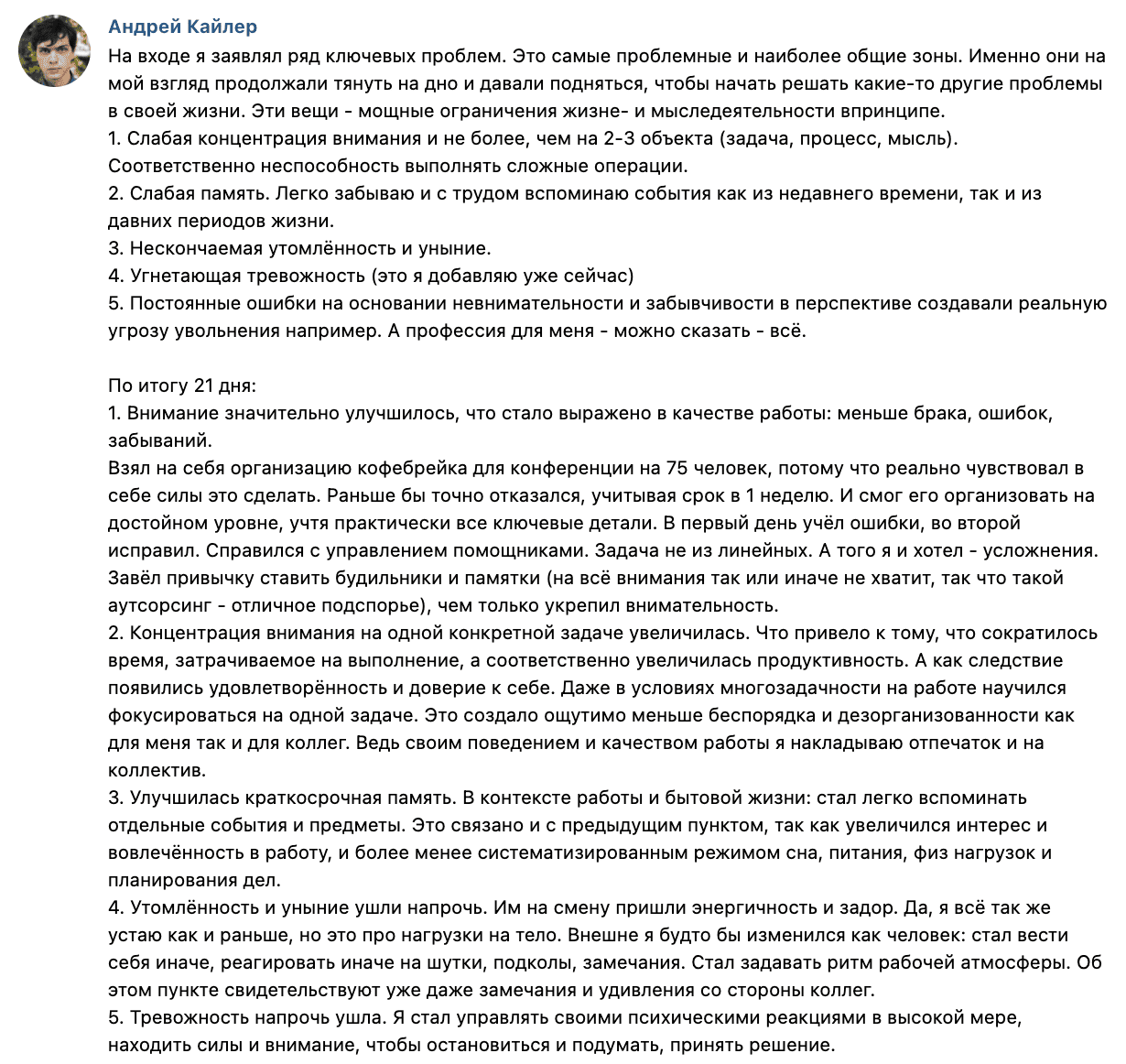 Уже на 7-й день встаёшь с утра без чувства усталости, держишь темп до самого вечера, засыпаешь легко